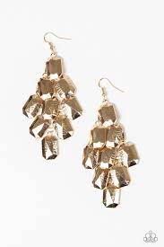 Delicately etched in linear patterns, faceted gunmetal emerald-shaped frames cascade from the ear for a contemporary look. Earring attaches to a standard fishhook fitting.