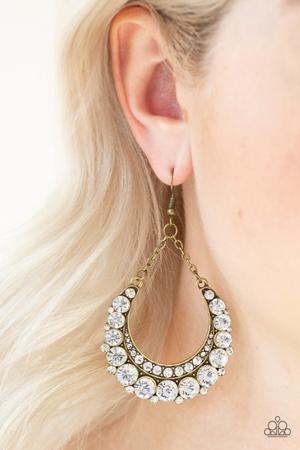 As if dipped in glitter, the bottom of a rhinestone encrusted frame is bedazzled into a collection of glassy rhinestones. The glamorous frame swings from chain fittings for an edgy finish. Earring attaches to a standard fishhook fitting.