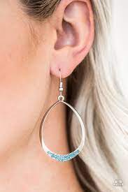 As if dipped in glitter, the bottom of a silver teardrop hoop is encrusted in glassy blue rhinestones for a refined finish. Earring attaches to standard fishhook fitting.