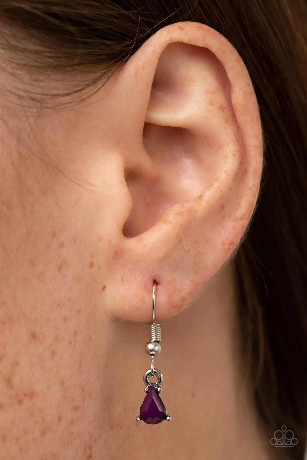 Mismatched teardrop and marquise plum and purple beads flair out from a dramatically oversized plum teardrop center, resulting in a vivacious pendant at the bottom of a silver chain. Features an adjustable clasp closure.
