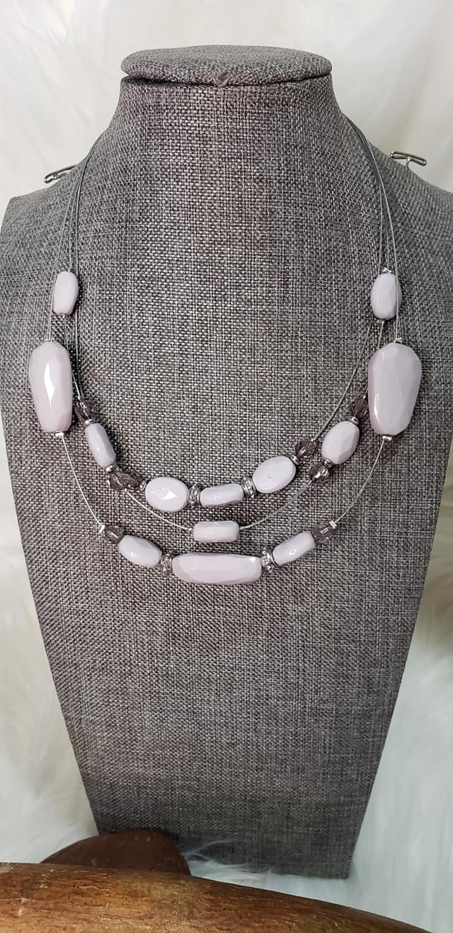 Infused with dainty metallic accents, a collection of faceted blue and purple or silver, and sparkling crystal-like beads are threaded along invisible wires below the collar for a whimsically layered look. Features an adjustable clasp closure.