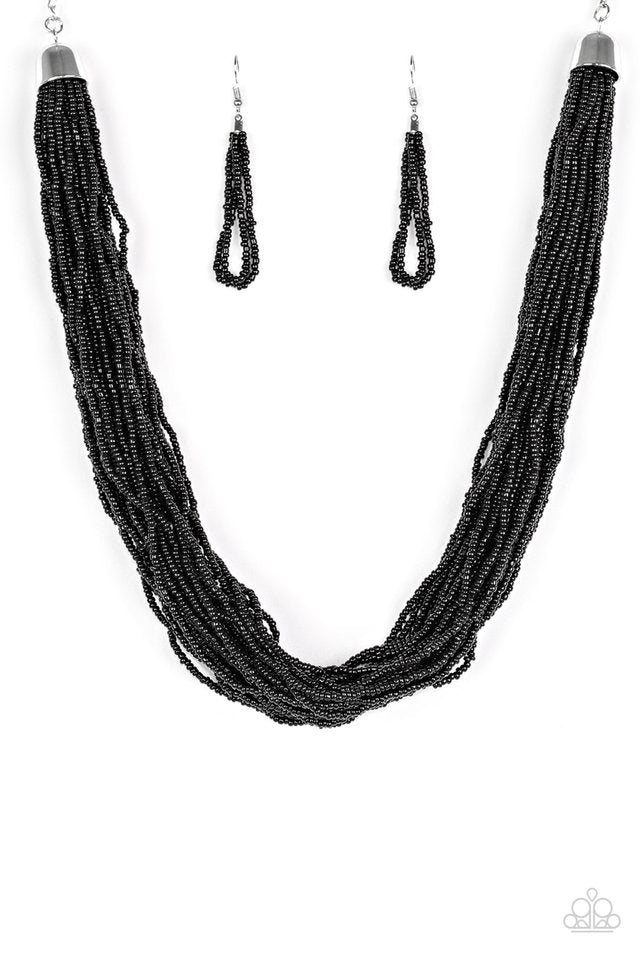 Infused with two bold silver fittings, countless strands of vivacious seed beads drape below the collar for a seasonal look. Features an adjustable clasp closure.