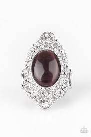 A glowing purple moonstone is pressed into a dramatic silver band radiating with glassy white rhinestones for a glamorous flair. Features a stretchy band for a flexible fit.