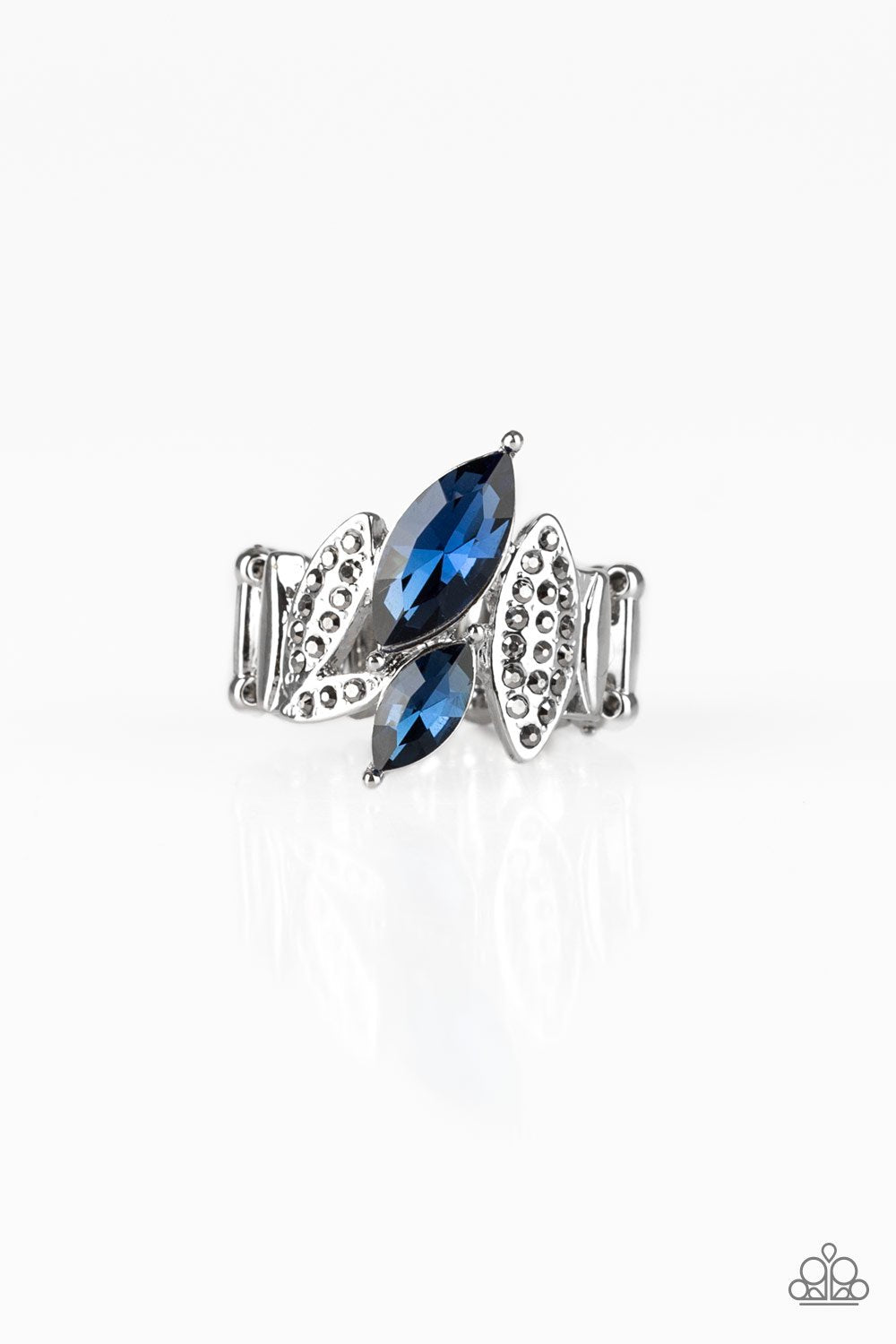 Featuring elegant marquise style shapes, hematite rhinestone encrusted silver frames and glittery rhinestones connect across the finger for an edgy-glamorous look. Features a stretchy band for a flexible fit.