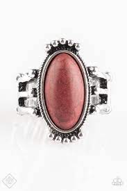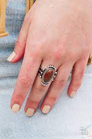 Chiseled into a tranquil oval, a smooth Chili Oil stone is pressed into a pronged frame for a seasonal look. Features a stretchy band for a flexible fit.
