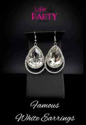 A dramatically oversized teardrop gem is pressed into a doubled gold or silver frame encrusted in countless white rhinestones for a blinding look. Earring attaches to a standard fishhook fitting.