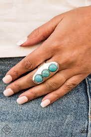Dotted in a trio of refreshing turquoise stones, an antiqued silver frame folds around the finger for artisanal look. Features a stretchy band for a flexible fit.