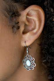 A faceted bead is pressed into the center of a frilly floral frame for a whimsical look. Earring attaches to a standard fishhook fitting.